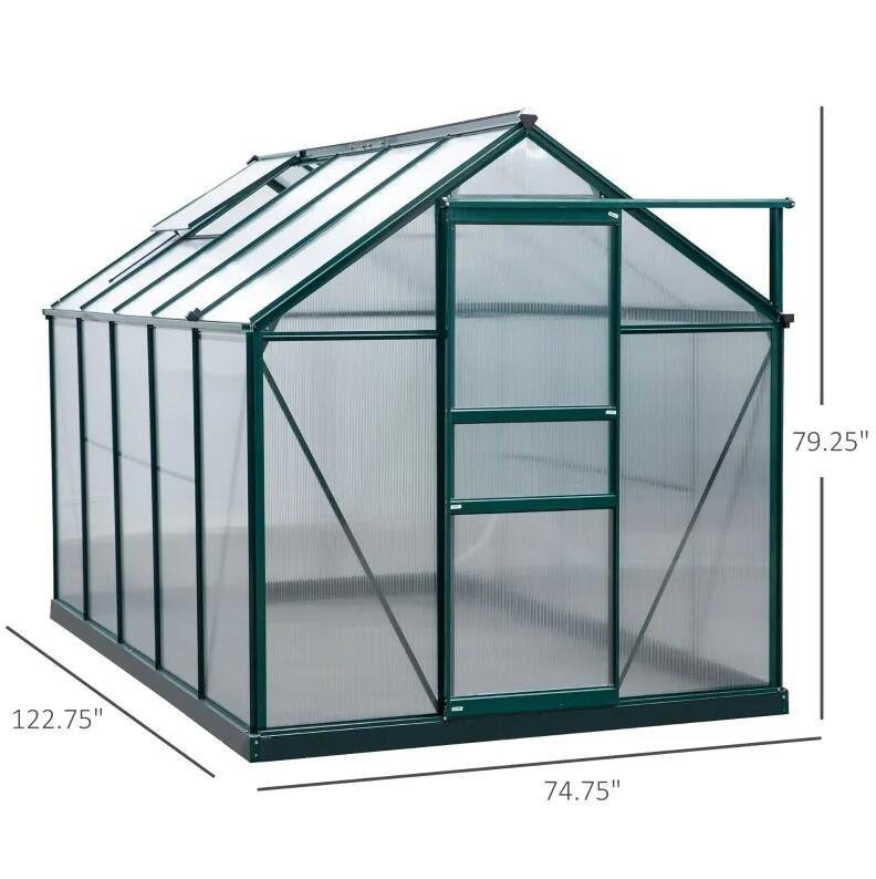10' x 6' x 7' Aluminum Polycarbonate Walk-In Garden Greenhouse UV-Resistant