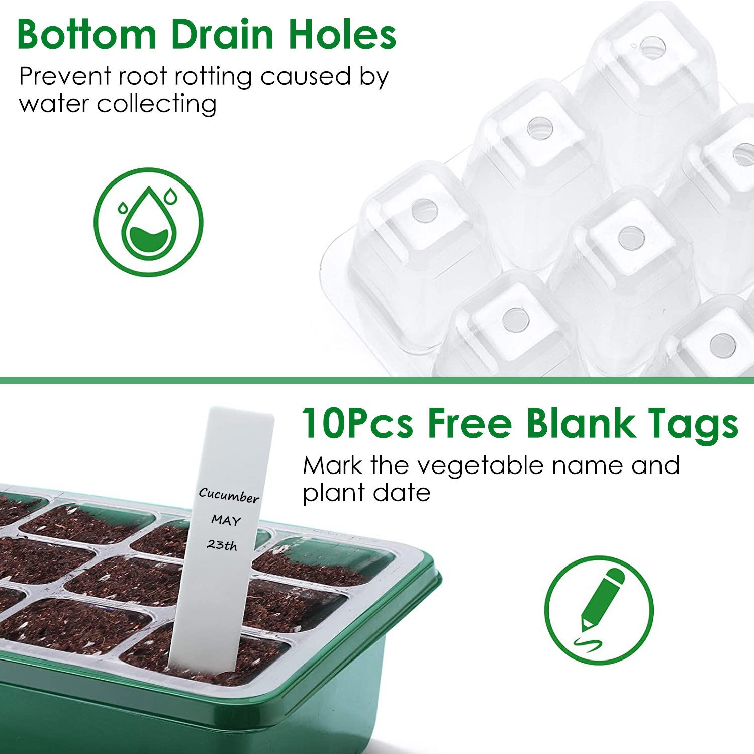 4.12Pcs Separate Seed Slots Per Tray
