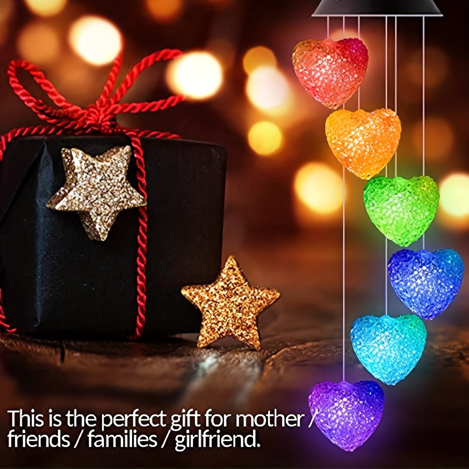 Home > 1pc Color Changing LED Solar Power Lamp Heart Wind Chimes Garden Decoration Yard Waterproof LED Light Lighting Hanging Decor (Heart)