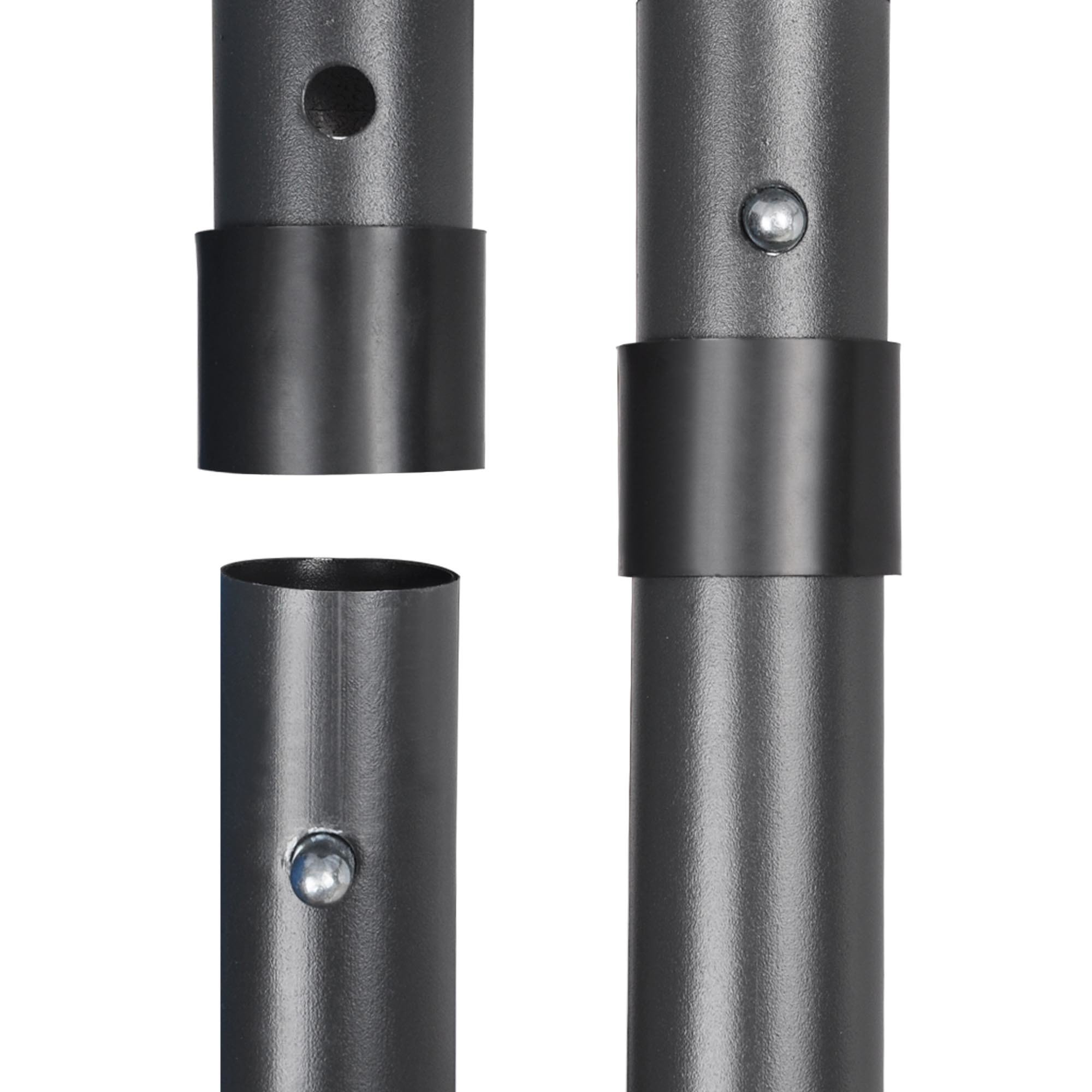 Metal pole unscrew at middle for easy storage