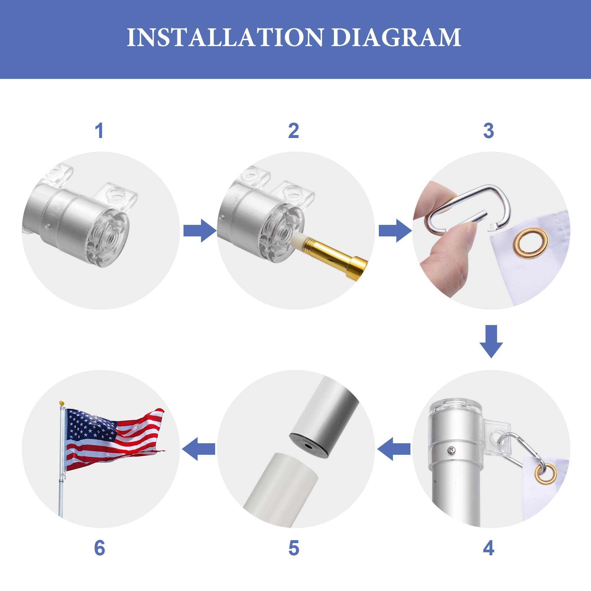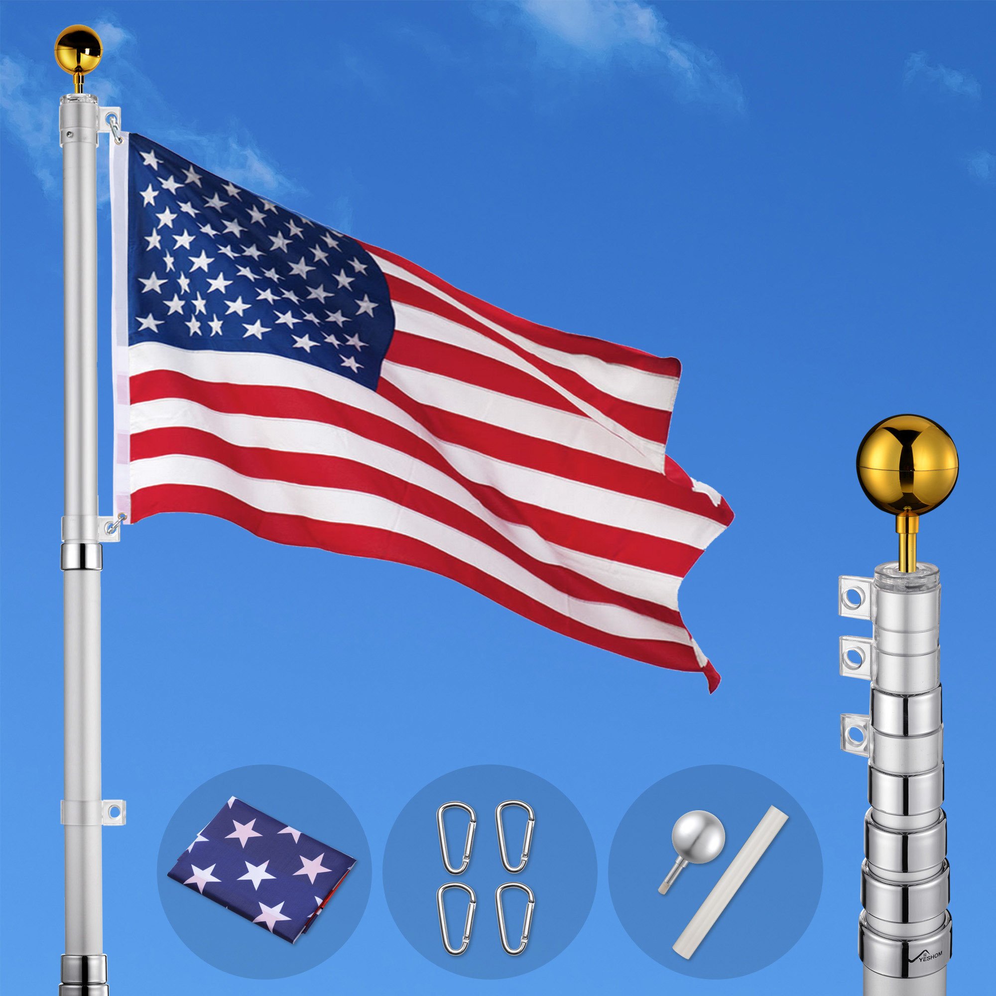 - 30ft aluminum telescoping Flagpole Kit with a golden and a silver top finial; Heavy duty 16 Gauge aluminum tube - durable; rust-proof and strong enough for outdoor using
