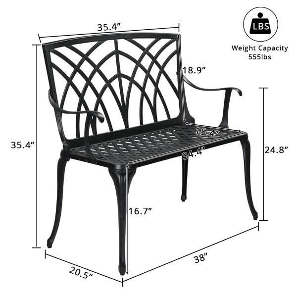 38in Outdoor Orchid Back Aluminum Bench Black