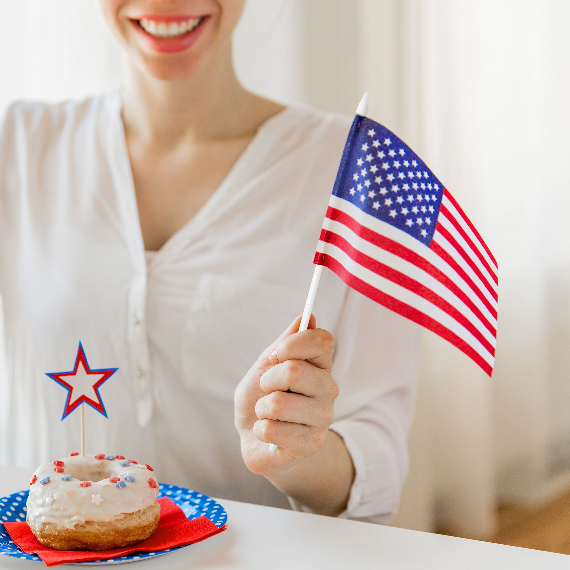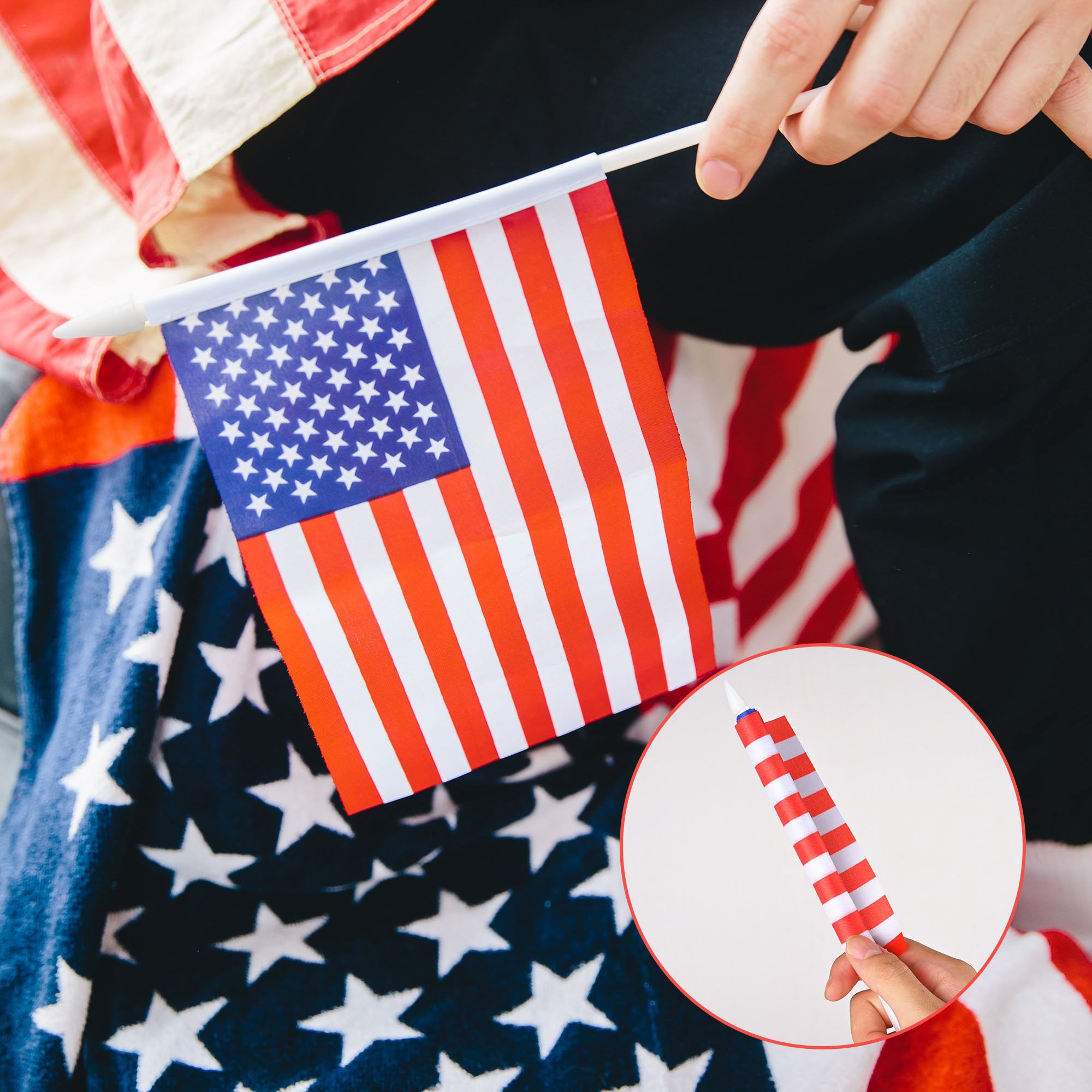 - Double Sided - 24 pack American Flags on Stick measure 5"x8" in size, featuring stars and stripes printed on both sides for clearly seen on 2 sides, an honorable symbol for expressing your patriotism & celebrating Independence Day, Patriot’s Day, Veterans Day, Memorial Day and more
