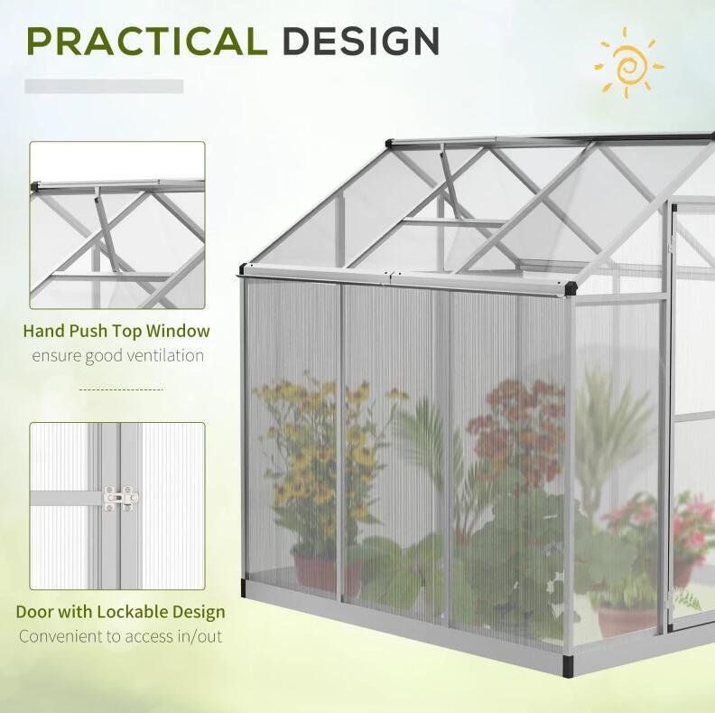 6' L x 6' W Walk-In Polycarbonate Greenhouse with Roof Vent for Ventilation & Rain Gutter;  Hobby Greenhouse for Winter 6' L x 6' W Walk-In Polycarbonate Greenhouse with Roof Vent for Ventilation & Rain Gutter;  Hobby Greenhouse for Winter 6' L x 6' W Walk-In Polycarbonate Greenhouse with Roof Vent for Ventilation & Rain Gutter;  Hobby Greenhouse for Winter 6' L x 6' W Walk-In Polycarbonate Greenhouse with Roof Vent for Ventilation & Rain Gutter;  Hobby Greenhouse for Winter 6' L x 6' W Walk-In Polycarbonate Greenhouse with Roof Vent for Ventilation & Rain Gutter;  Hobby Greenhouse for Winter 6' L x 6' W Walk-In Polycarbonate Greenhouse with Roof Vent for Ventilation & Rain Gutter;  Hobby Greenhouse for Winter