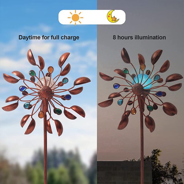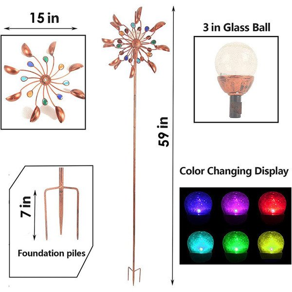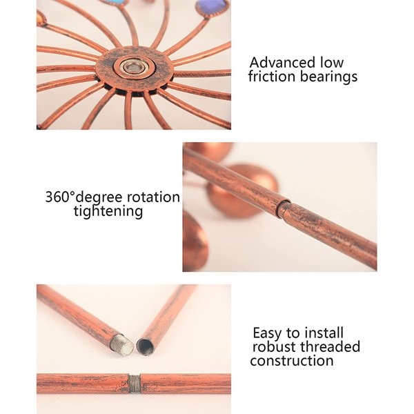 5. Durability: Our wind spinners have a sturdy foundation pile design and a rust-resistant copper brushed coating throughout the surface to withstand most weather conditions and extend the service life.