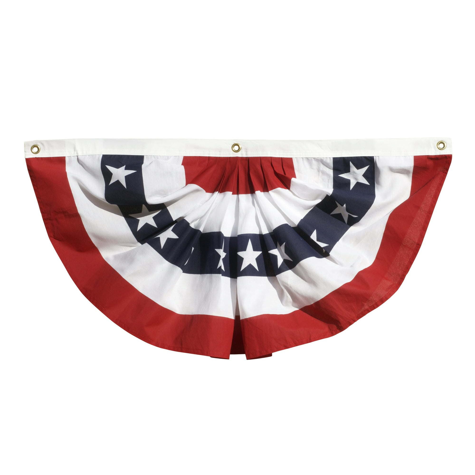 3' x 6', Pleated, Polycotton, Fan With 5 Stripes & Stars, Great For Decks & Porches, Polycotton Blend Fabric All Sewn Construction, e Indoors Or Out, Matches Mini Fan & Bunting, Single Fan With Canvas Heading & Brass Grommets, Printed Stars & Stripes.