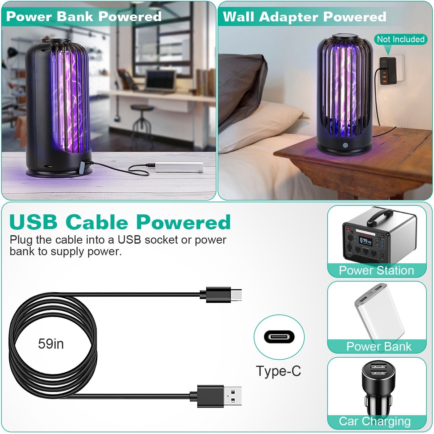 *USB Cable Powered*:Come with a 59in Type-C cable; perfectly solve the problem of outdoor power supply. Just plug the cable into a USB socket or power bank to supply power for indoor or outdoor use.