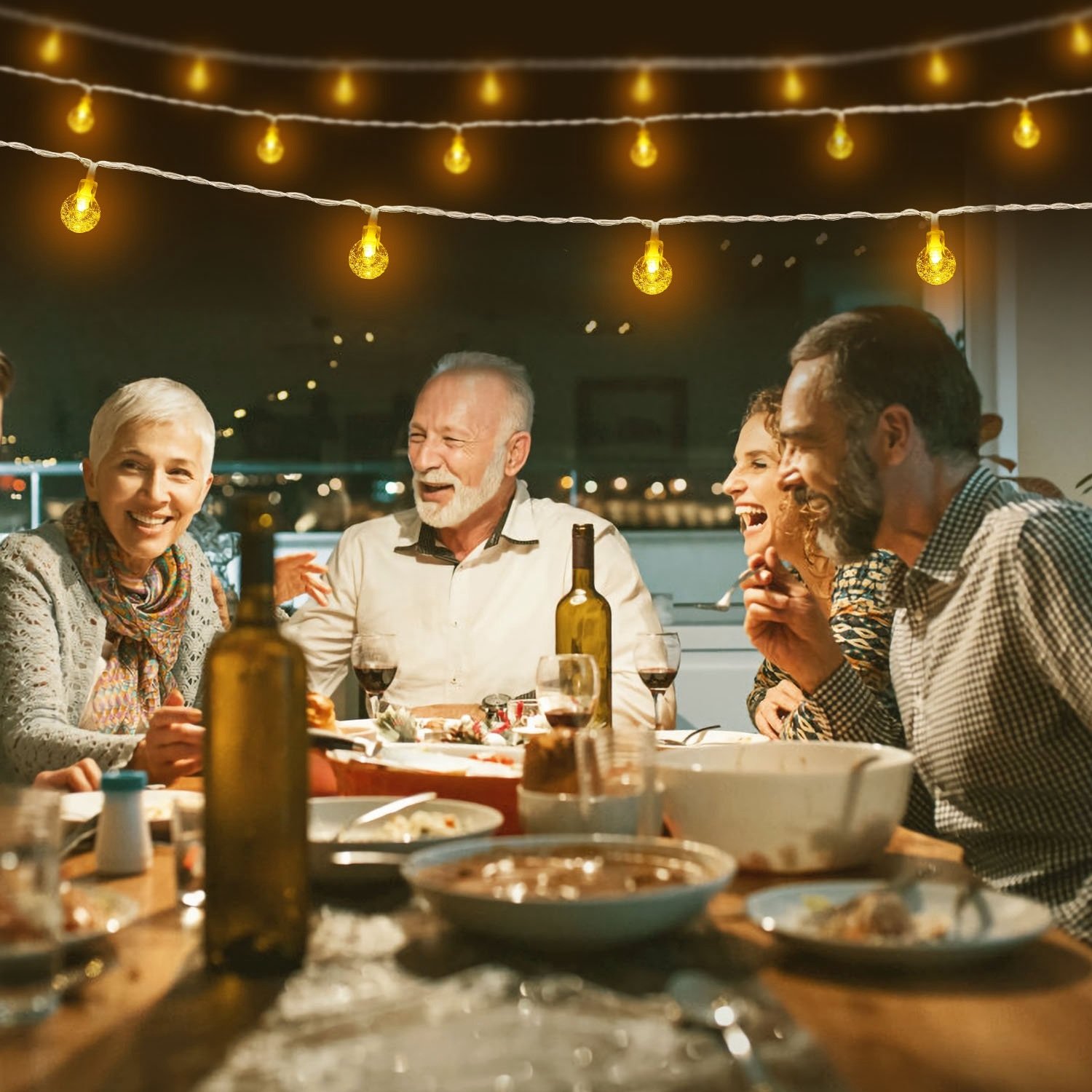 *IP44 Waterproof*:Manufactured from IP44 waterproof and dustproof rated ABS material; this string light is designed to withstand light rain; water spills; dust and dirt in harsh environment. Ideal for year-round decoration for outdoor events!