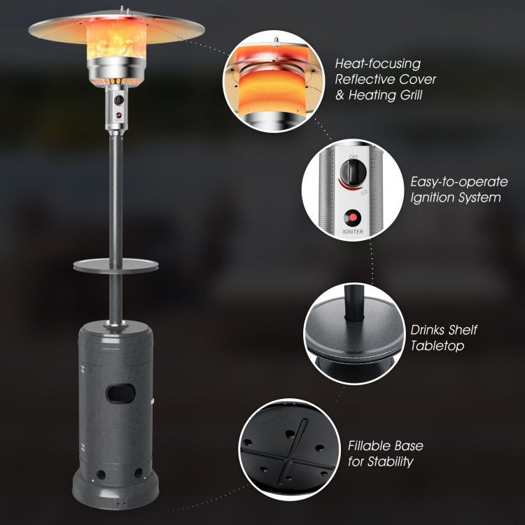 Outdoor Heater Propane Standing LP Gas Steel with Table and Wheels