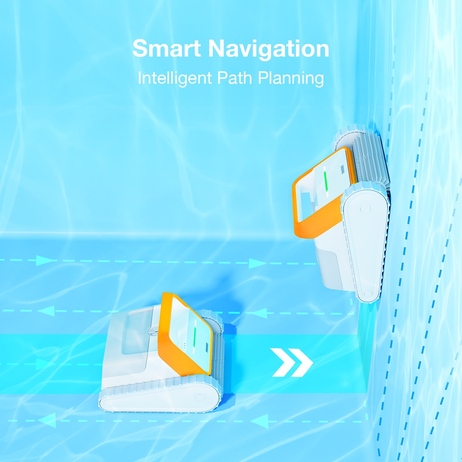 4.10X More Efficient: SMOROBOT intelligent pool cleaner's wall-climbing capabilities (in standard mode) ensure the ultimate clean by climbing your pool walls and floors with true intelligent path planning; Efficient coverage reaches 1,180 square feet per hour, with a larger area cleaned in the same amount of time as traditional random routing; Deep cleans pool floor, walls, and scrubs tile line while saving time and effort