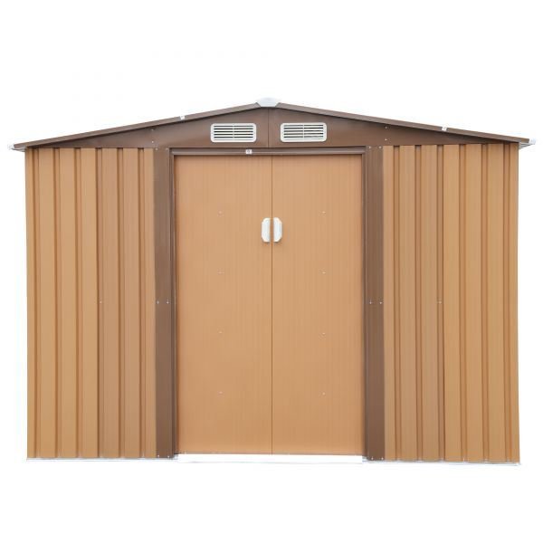 [Spacious Inner Space]This 8' x 8' tool shed offers an effective solution for storing your outdoor furniture, lawnmowers, wheelbarrows, bicycles and more.
