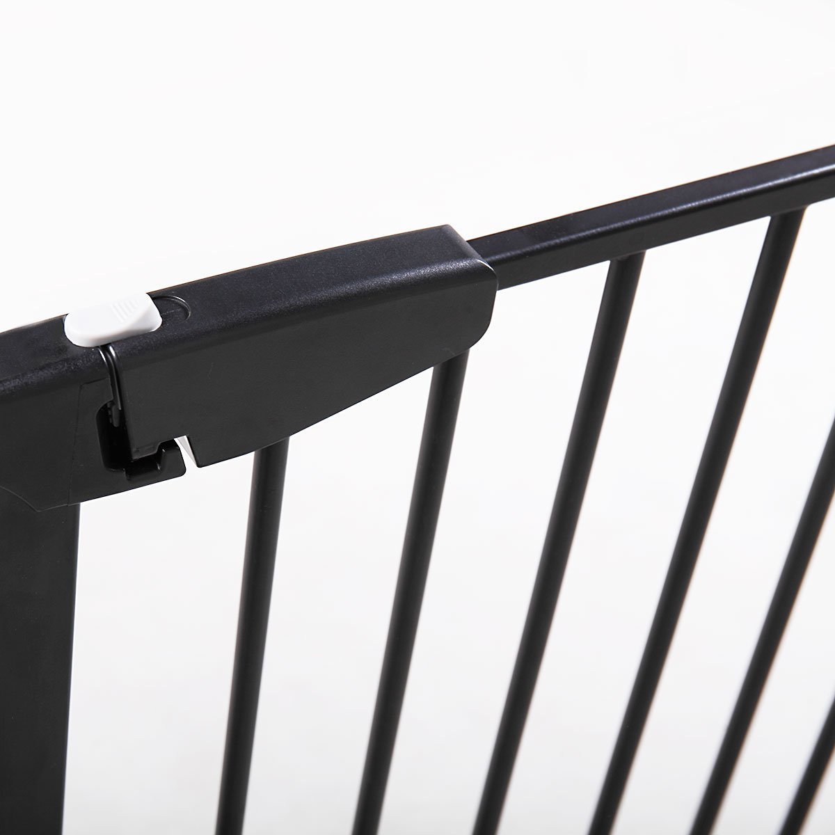 [180° 2-Way Opening Gate]: Easily openingthe door by pressing the safety lock and lifting the door in one hand.Featuring180° two-way opening; the security gate allows you to pass through in both directions.