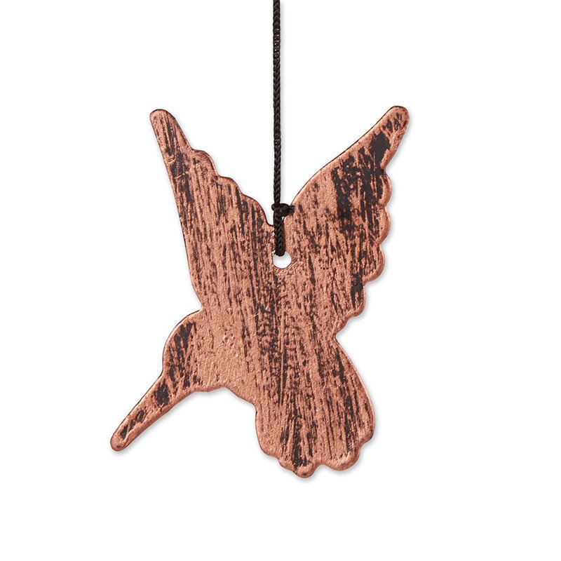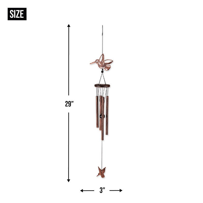 2.This wind chime is made from pine wood and iron, and it features a cutout hummingbird ornament on top and a lovely hummingbird charm below