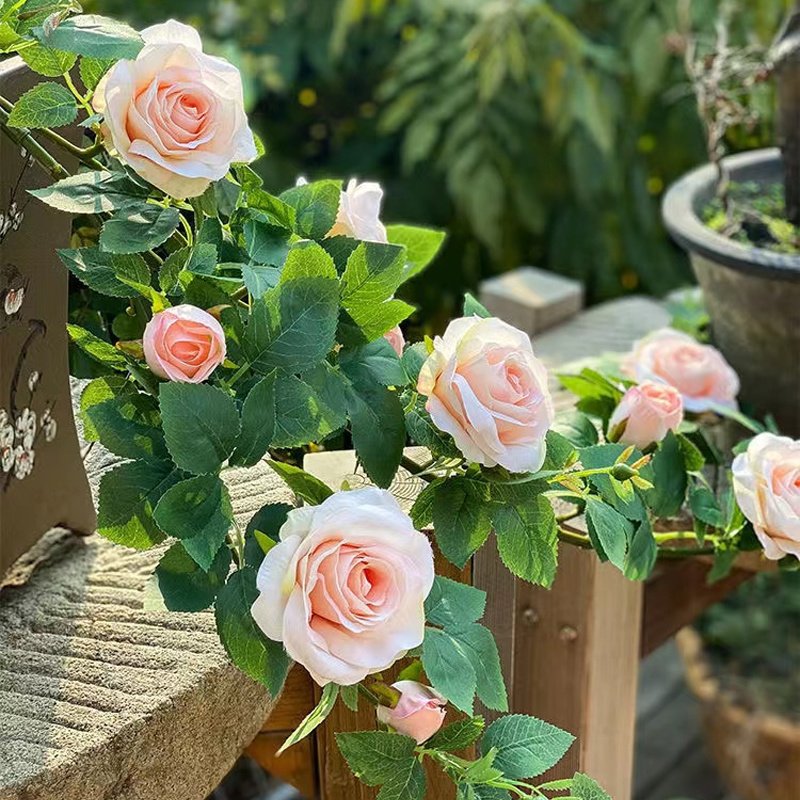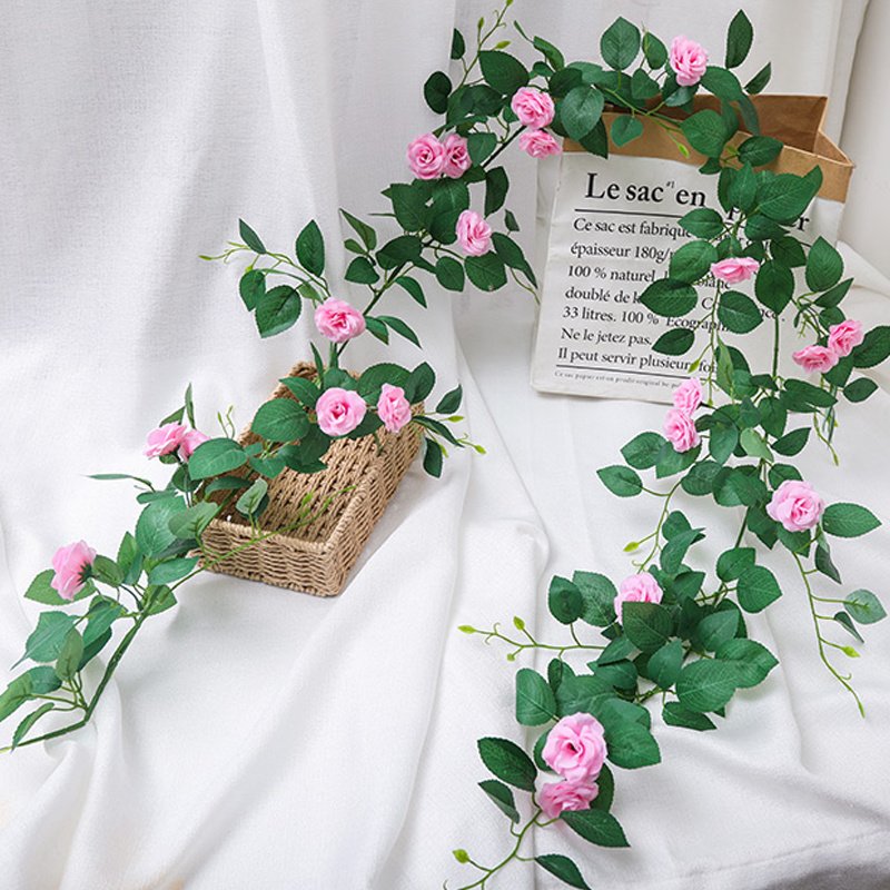 Home > 2pcs Fake Rose Vine Flowers Garland Plant Artificial Flower Wall Hanging Flower Rattan Fake Plant Leaf Wedding Home Garden Decor