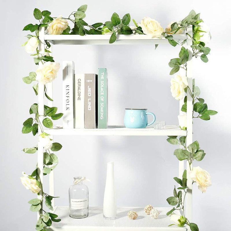 Home > 2pcs Fake Rose Vine Flowers Garland Plant Artificial Flower Wall Hanging Flower Rattan Fake Plant Leaf Wedding Home Garden Decor