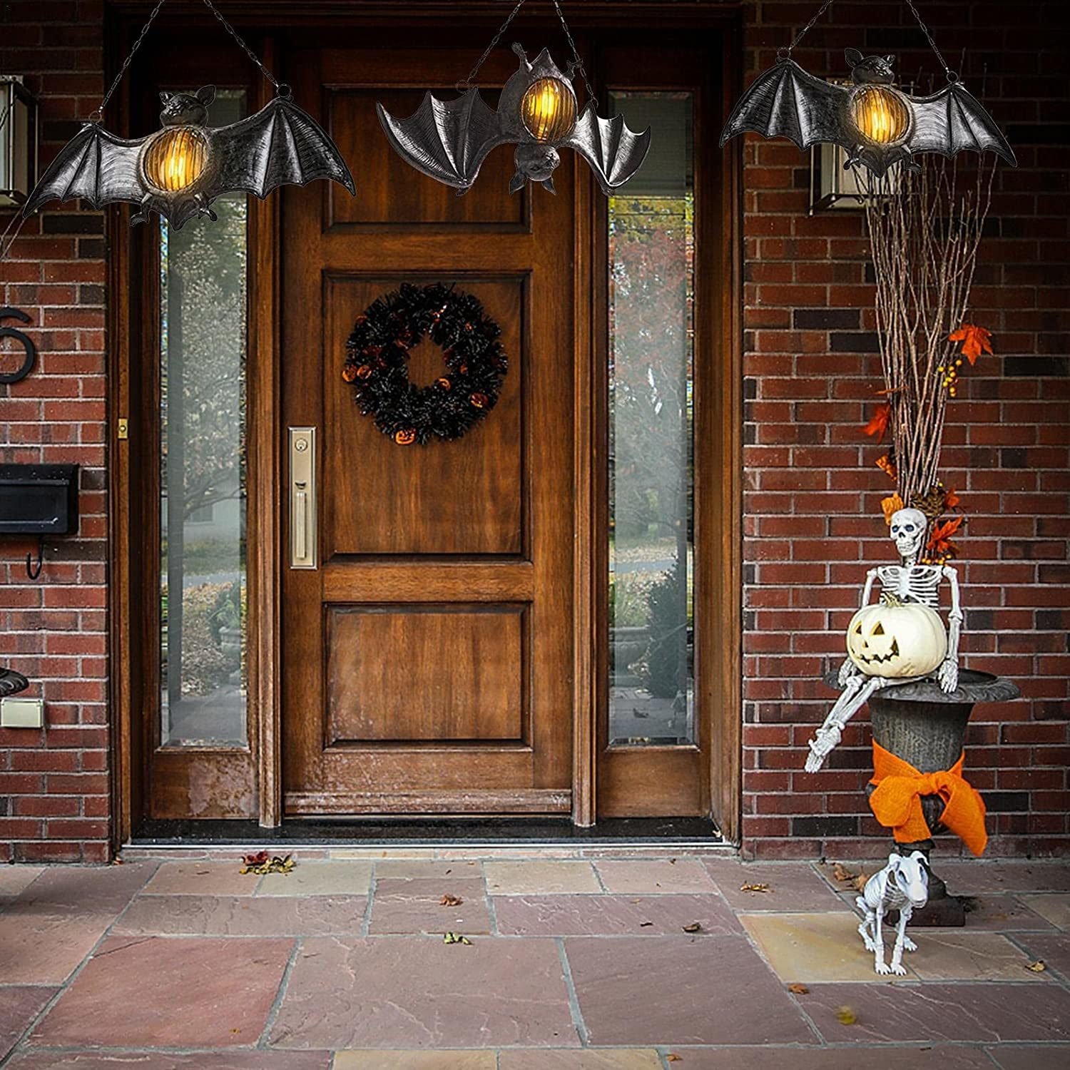 ✅ Best Decoration - When night falls, the LED lights on the bat's abdomen light up to create a scary atmosphere. The retro-style flameless bat chandelier is suitable for indoor and outdoor hanging, perfect for indoor patio entryways and outdoor party decorations. It can be hung on doors, windows, trees, etc. to feel the Halloween atmosphere.