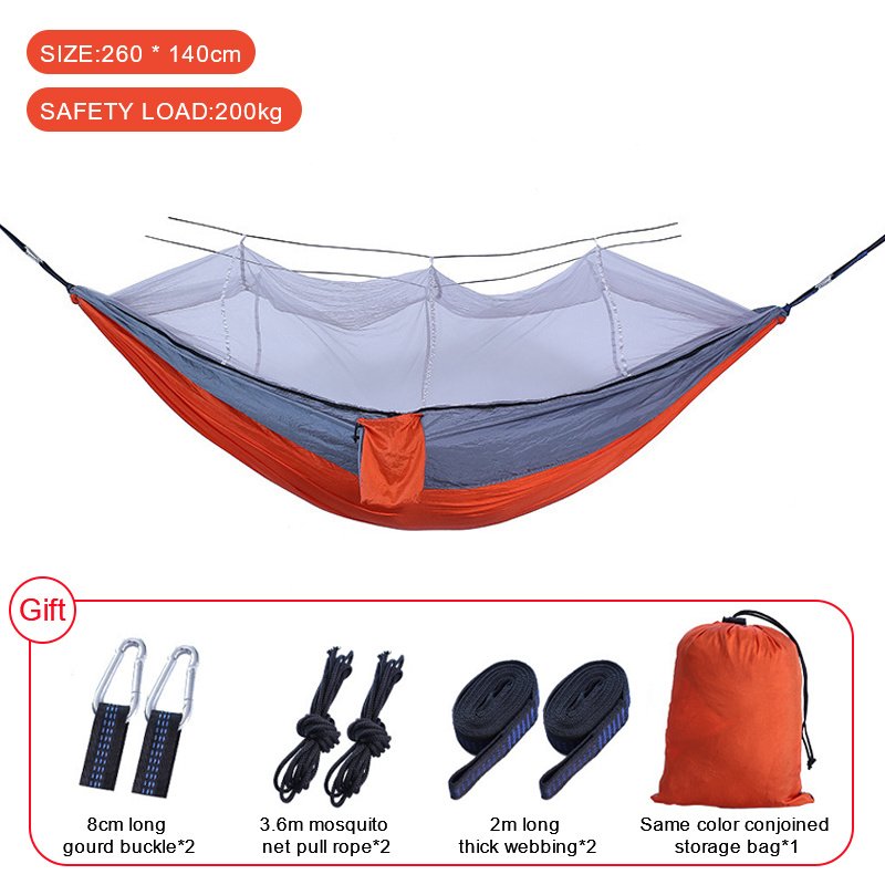 Accessories: 8cm silver iron buckle*2; 2m high-strength nylon rope*2; 3.6m mosquito net drawstring; a conjoined storage bag