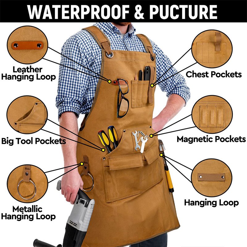 Ocassion: Tool apron is suitable for workshop; woodworking; machinist; technician; carpenter; barista; artist; barbecue. The best gift for Father's Day; Mother's Day; Christmas; Thanksgiving and Birthdays.