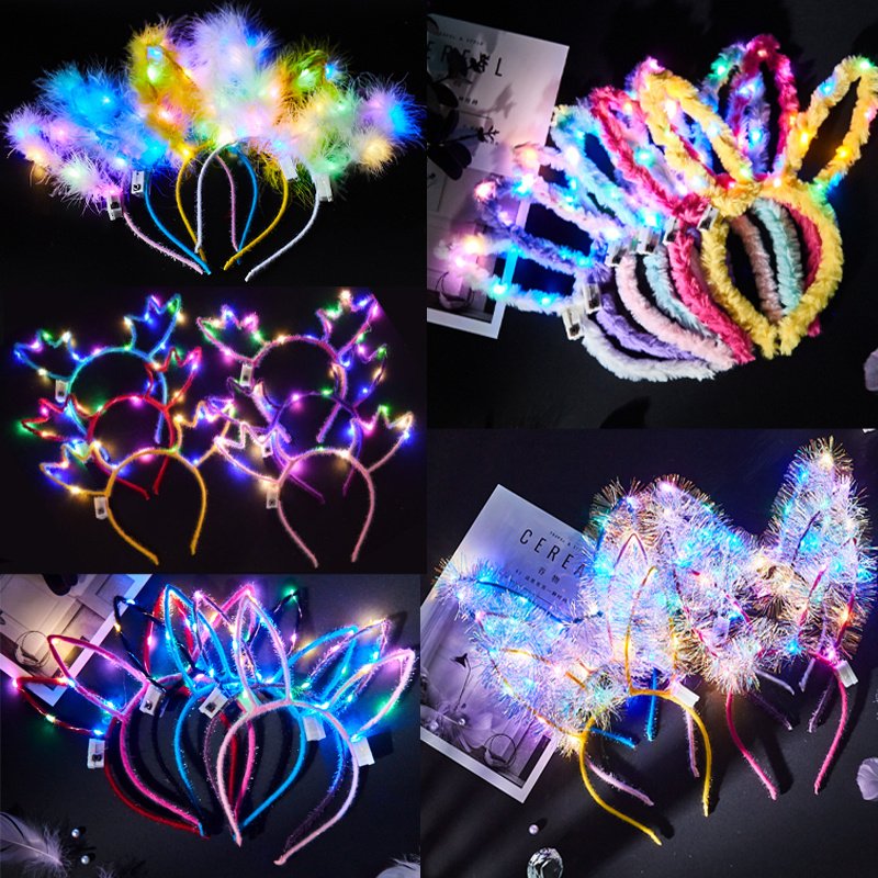 Home > Easter Headwear Led Bunny Ears Headbands Glowing Rabbit Cat Party Light Up Blinking Headwear Wedding Birthday Holiday Gift Decor
