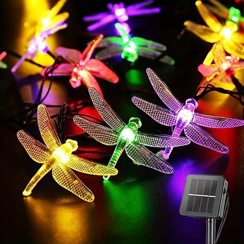 Home > 1pc Solar Dragonfly String Lights Waterproof 20 LEDs Dragonfly Fairy Lights Decorative Lighting For Indoor/Outdoor Home Garden Lawn Fence Patio Party