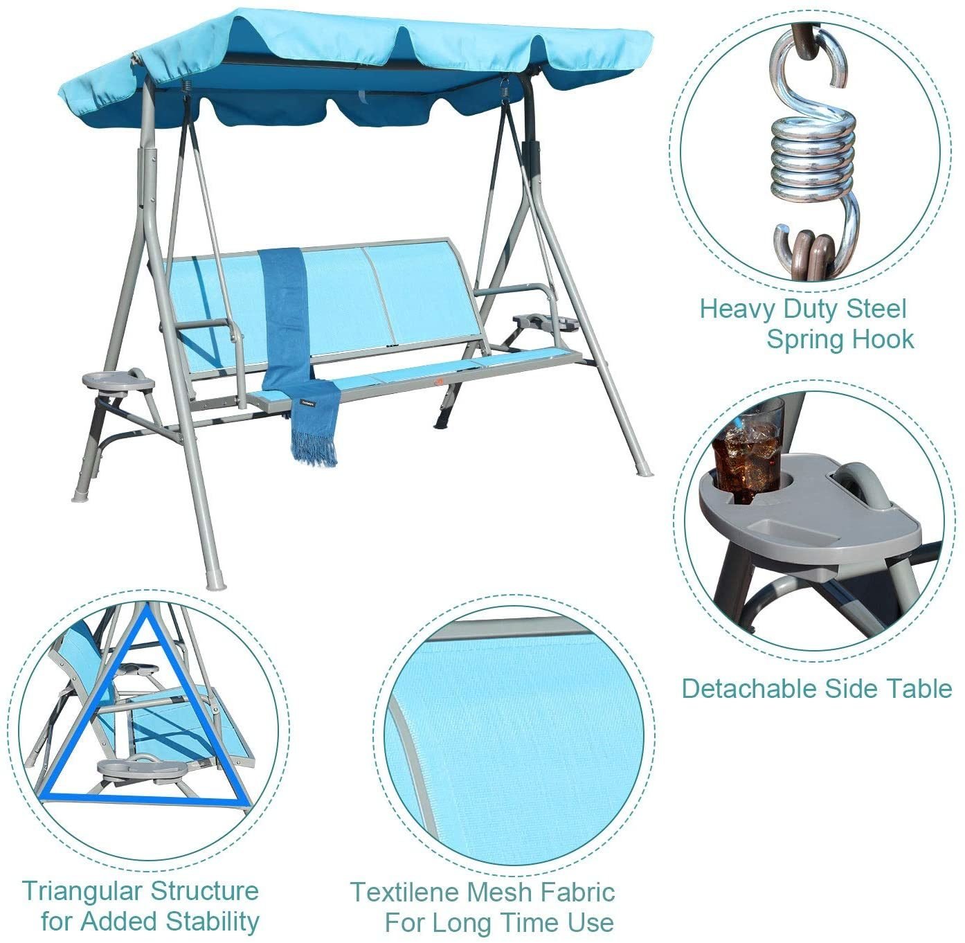 2.Weather resistant & Adjustable: The canopy design for sunshade and rain protection, against the wind and rain and dust,Comfortably swings up to 3 people for the perfect outdoor lounging experience, High quality, weather-resistant steel frame ensures long lasting enjoyment for years to come.