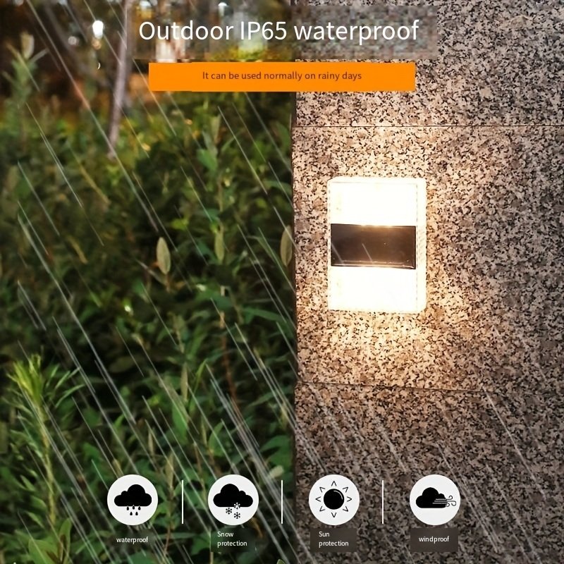 Home > 4pcs Solar Wall Lights Outdoor IP65 Waterproof LED Step Light; Solar Fence Lights For Outdoor Yard Garden Lawn Patio Courtyard Fences Driveway Pathway