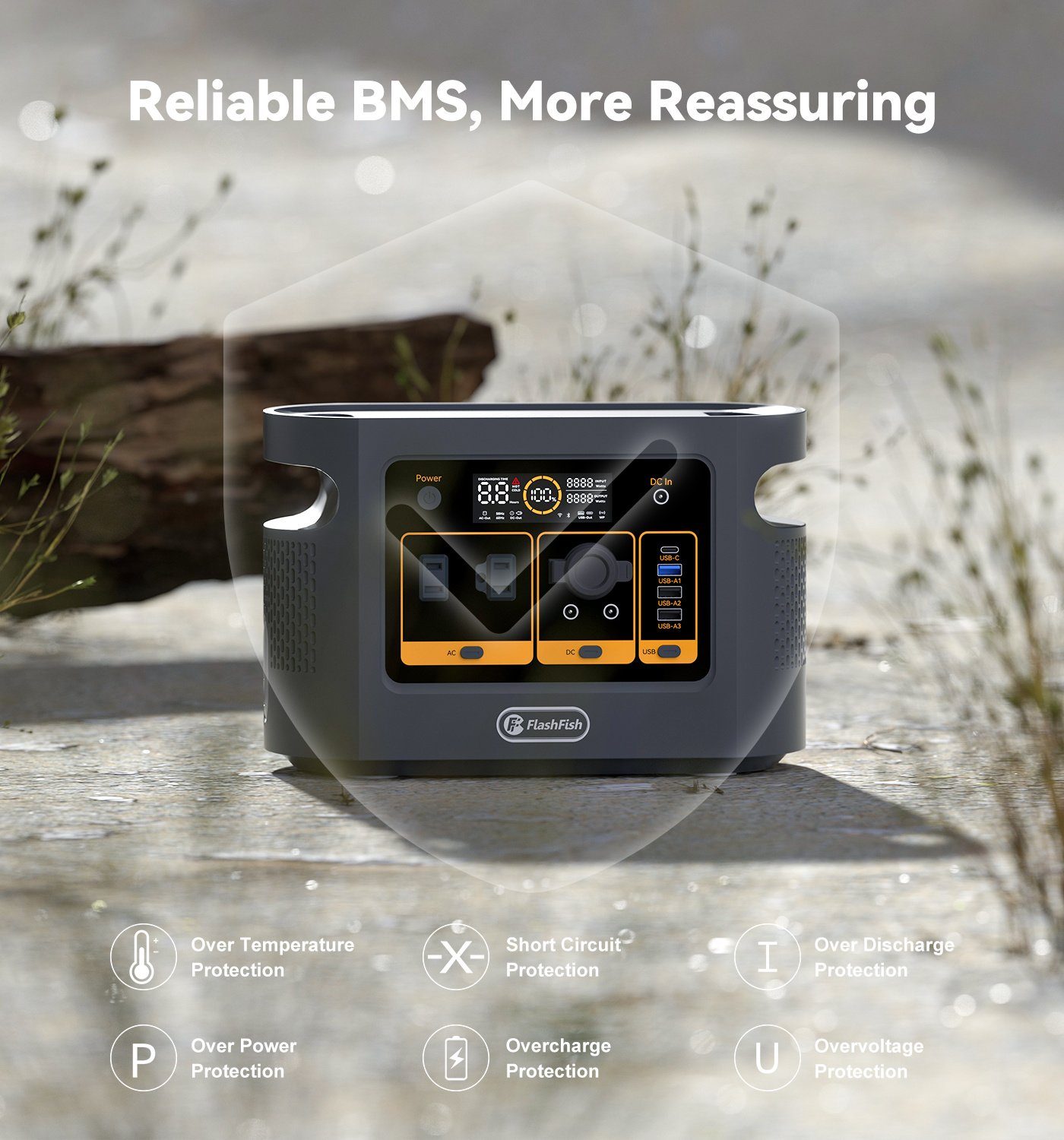 2.[LiFePO4 Long-Life Battery] - Combined with LiFePO4 batteries, Flashfish 600W power station is durable for 3000+ battery 80% cycles, means it has an impressive lifespan of around 8 to 10 years. Features with advanced BMS protection, monitoring voltage, current, and temperature to keep your LFP battery running for years.