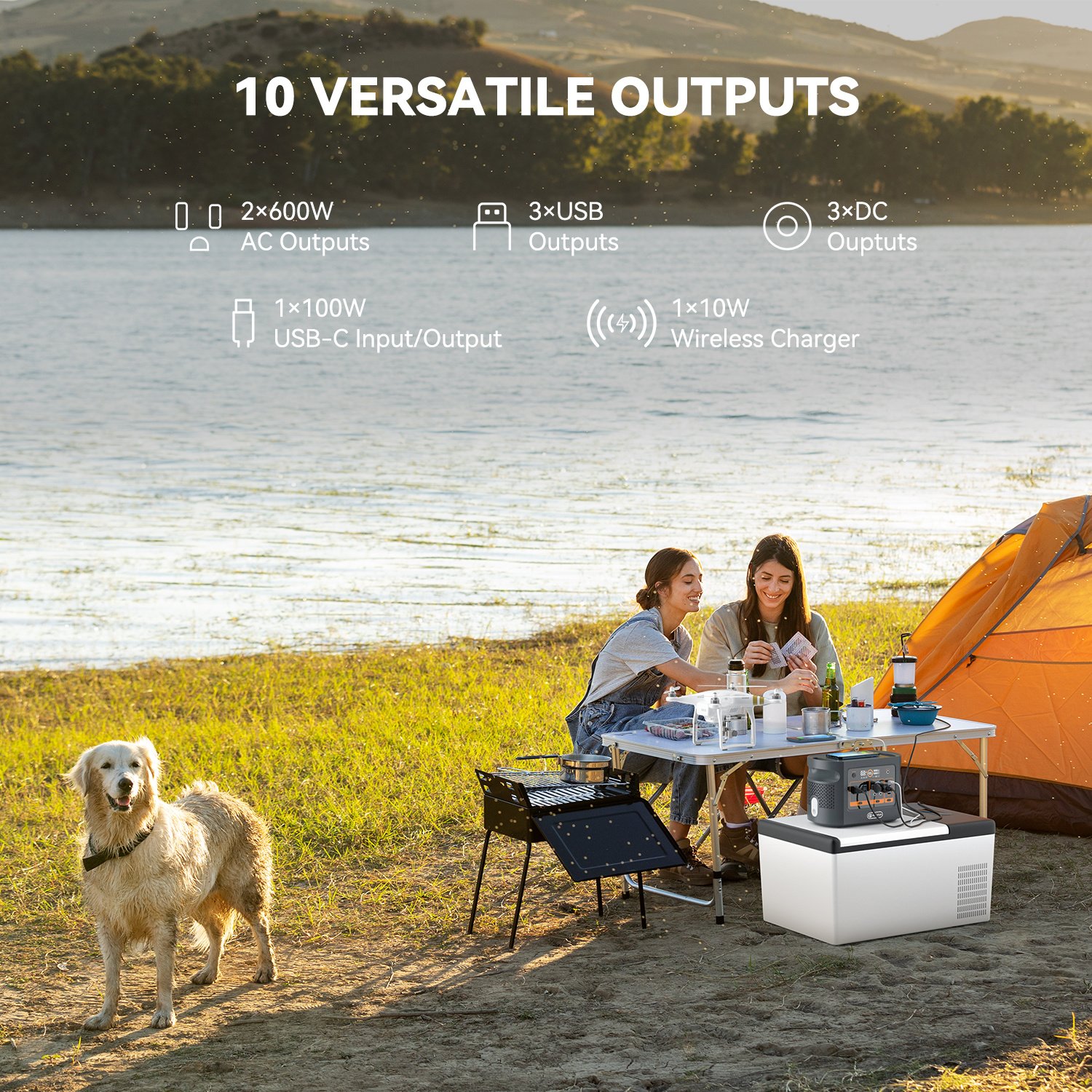 3.[10 Versatile Outlets] - 100W PD for super-fast charging, and 2*600W AC outlets, 2*120W DC ports, 1*car port, 1*the wireless charging pad and 3*USB-A outputs make the portable power station perfect for the campers or any outdoor enthusiasts.