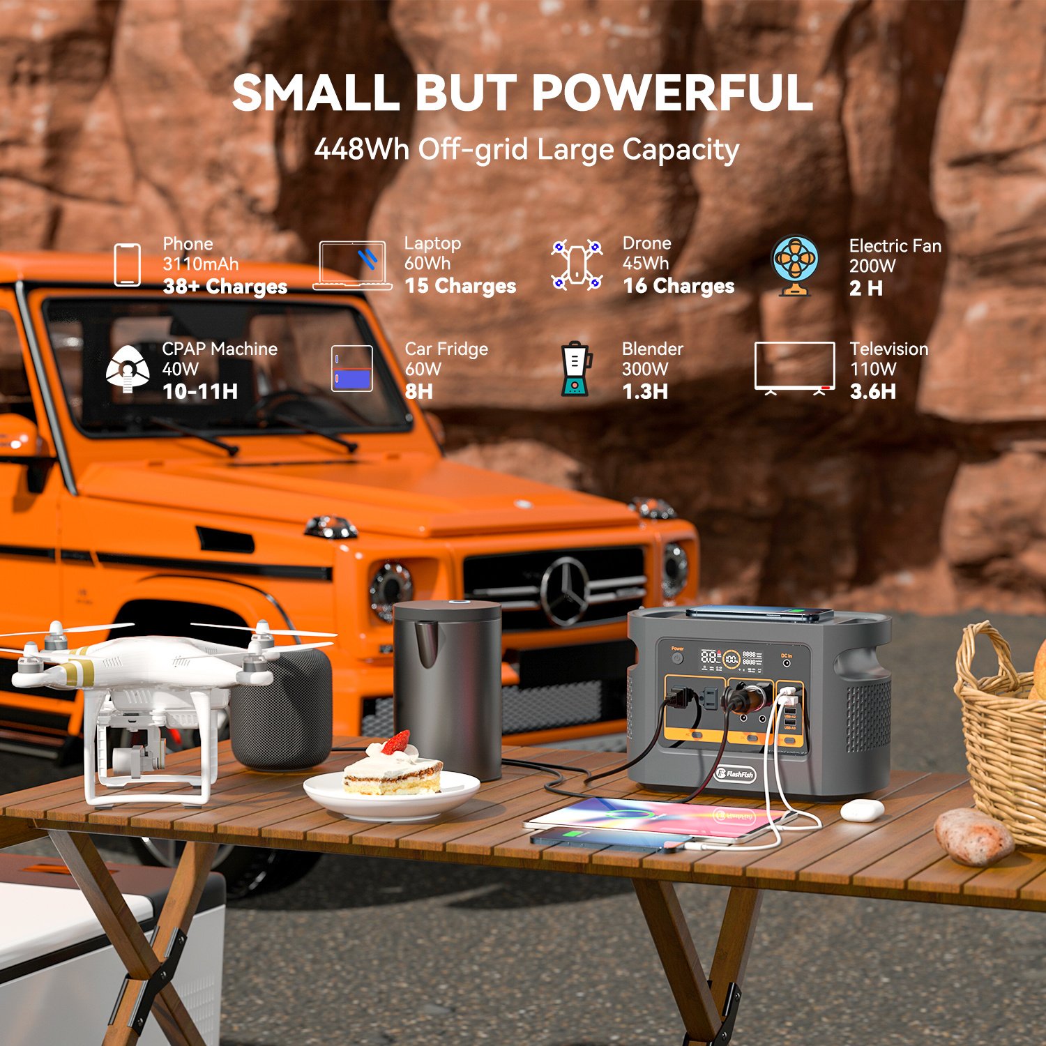FF FLASHFISH Portable Power Station; 448Wh/140000mAh LiFePO4 Battery Pack; UPS Solar Generator With 600W (Peak 1000W) AC Output; 100W USB-C; Backu