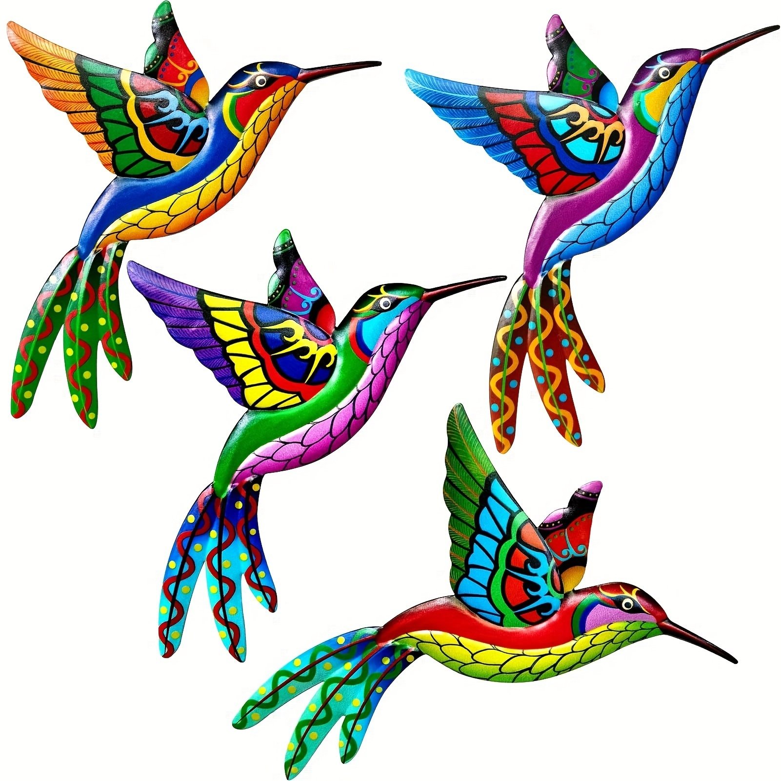 Home > 1pc/4pcs, Metal Hummingbird Wall Art Decor, Metal Colorful Birds 3D Outdoor Sculpture, Iron Outdoor Hanging Decor Ornaments, Metal Hand-made Bird Wall