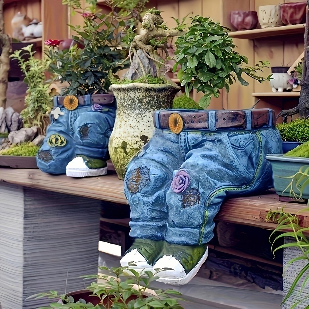 Home > 1pc Funny Indoor And Outdoor Flower Pots Resin Denim Pants Ornaments Creative Flower Pot Decoration Crafts Retro Garden Decoration