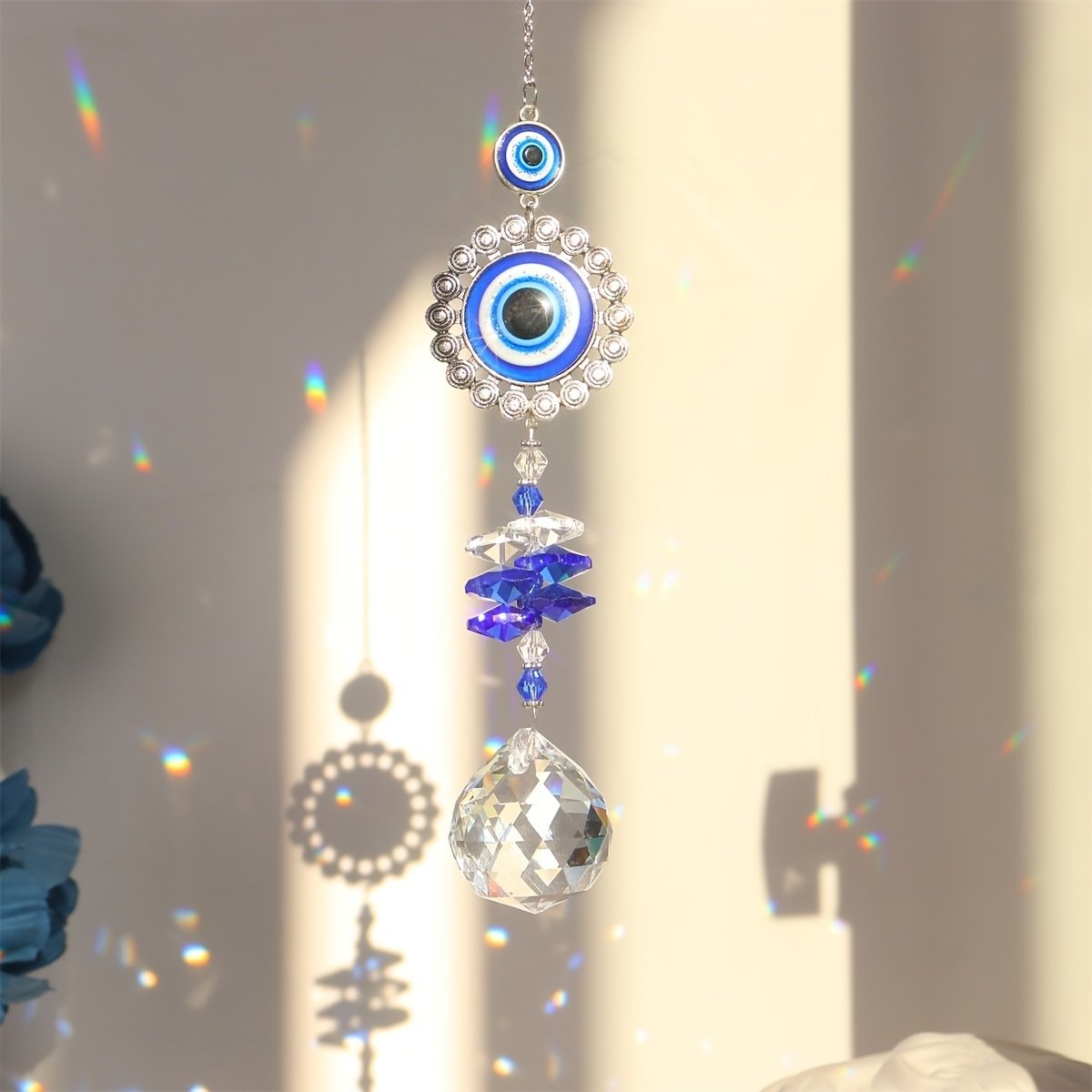 1pc Crystal Sun Catchers, Blue Butterfly Evil Eye Suncatcher Indoor Window With Prism Ball, Sunlight Rainbow Maker Good Luck Hanging Crystals Ornament