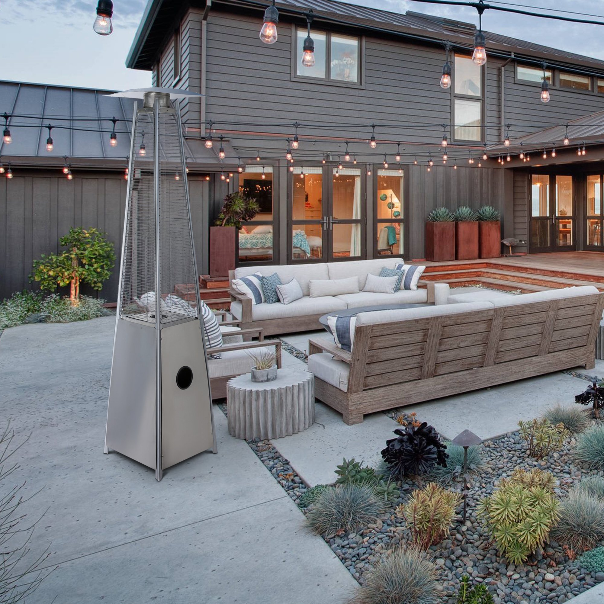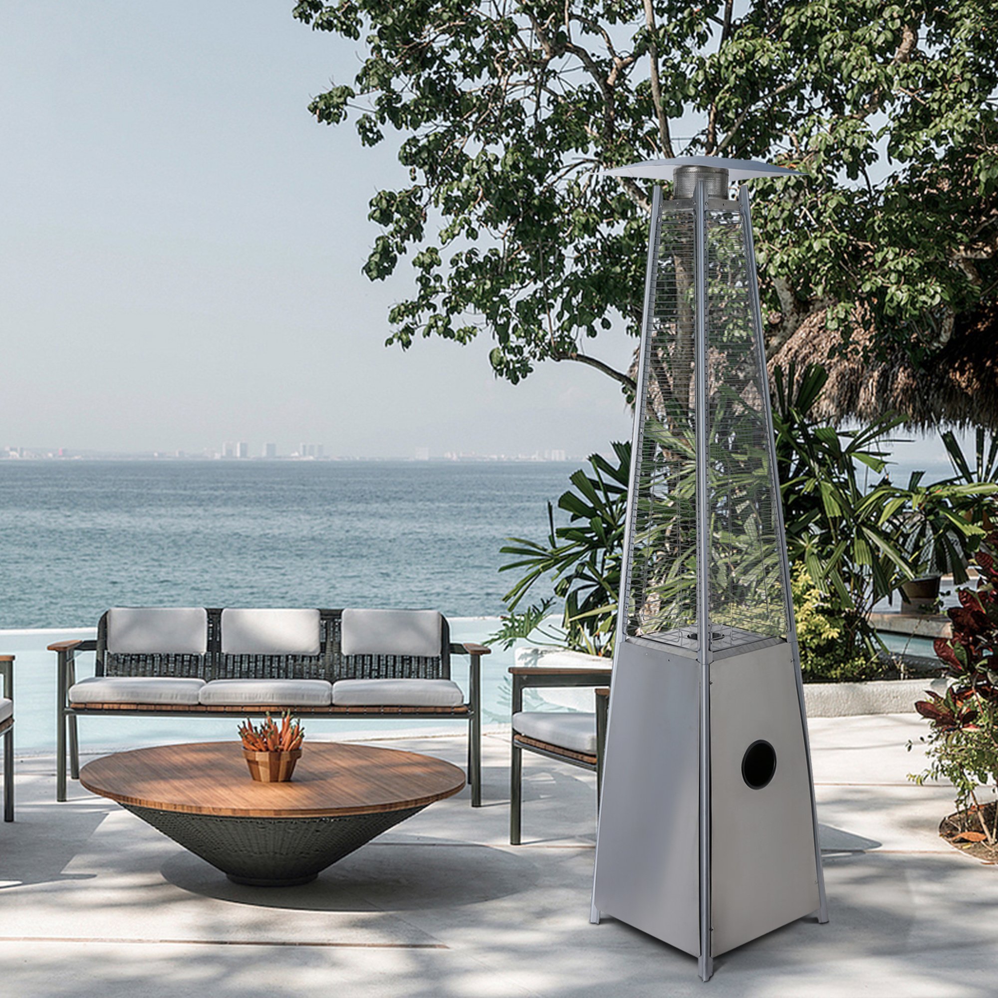 Patio heaters allow you to enjoy your outdoor spaces more months of the year and in more types of weather. Outdoor pyramid heater has variable heat setting and built-in control valve, which can adjust the temperature according to your preference.Turn a cold night into a comfortable and warm night! With our unique design, this product achieves a perfect balance between beauty and function.Enhance the appearance of any outdoor living space.