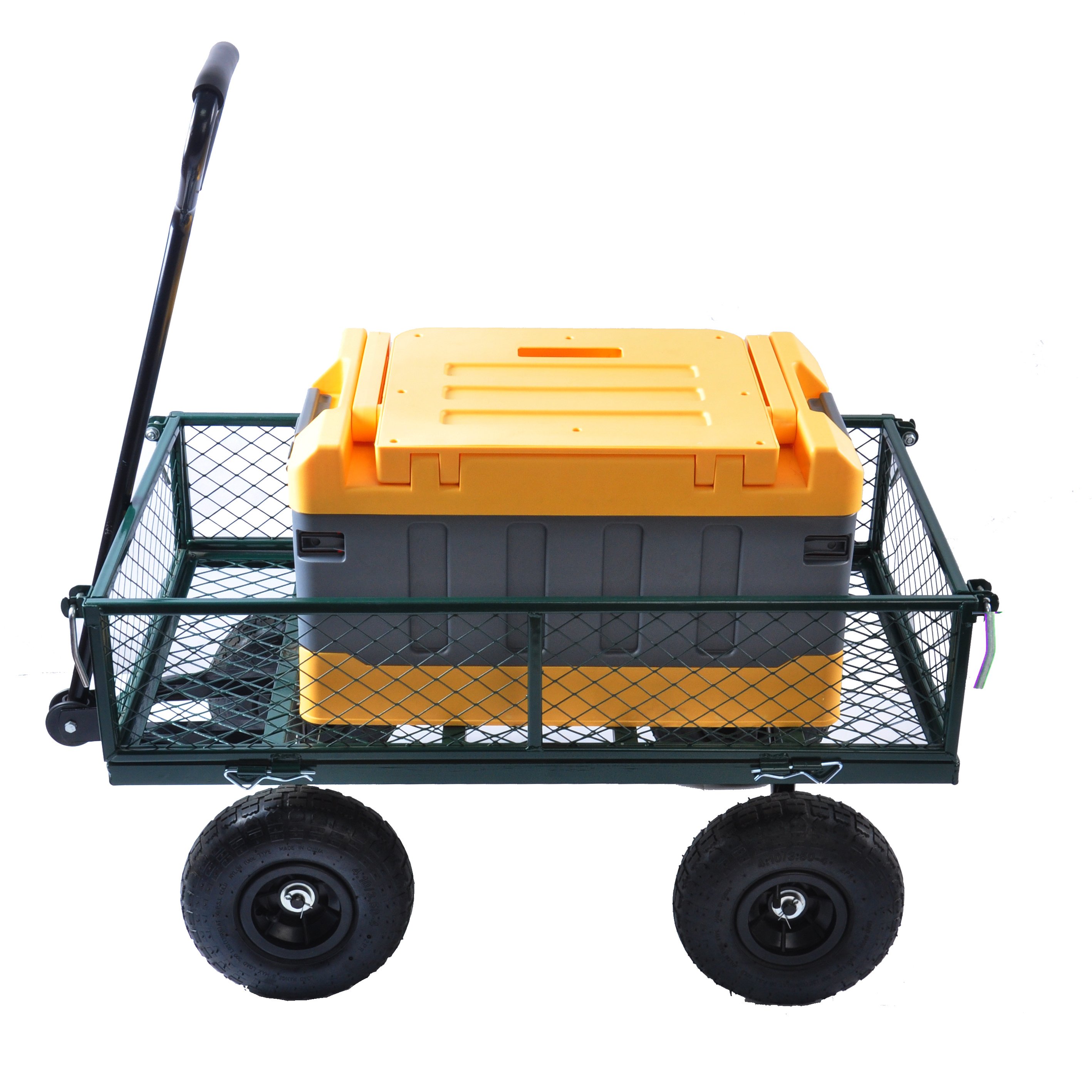 Wagon Garden trucks make it easier to transport firewood, plants, chicken feed, potted soil and honeycombs. The detachable side on the foldable utility wagon increases versatility when carrying larger loads. The practical garden trolley bears 550 pounds (about 249.5 kg), so it is strong enough to carry heavy work. You don't have to drag heavy materials to the original place on multiple trips. Heavy reinforced steel frame, 180-degree steering range handle control and 10-inch (about 25.4 cm) pneumatic tires make this garden utility vehicle stable and ready to help you complete tasks in the yard. Buy quickly! ! !